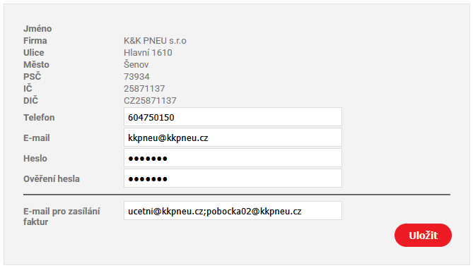 RÁJ PNEU CZInformaceNápověda k e-shopuFaktury na jiný nebo více e-mailů.