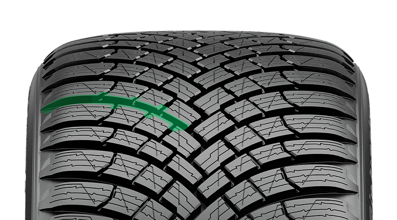 Díky inovativnímu dezénu s "V" designem a zuby pro zachycování sněhu poskytuje pneumatika nejlepší brzdný výkon ve své třídě na sněhu a prvotřídní trakci, jak potvrdily nezávislé testy DEKRA a získaný certifikát TÜV SÜD Premium Quality.