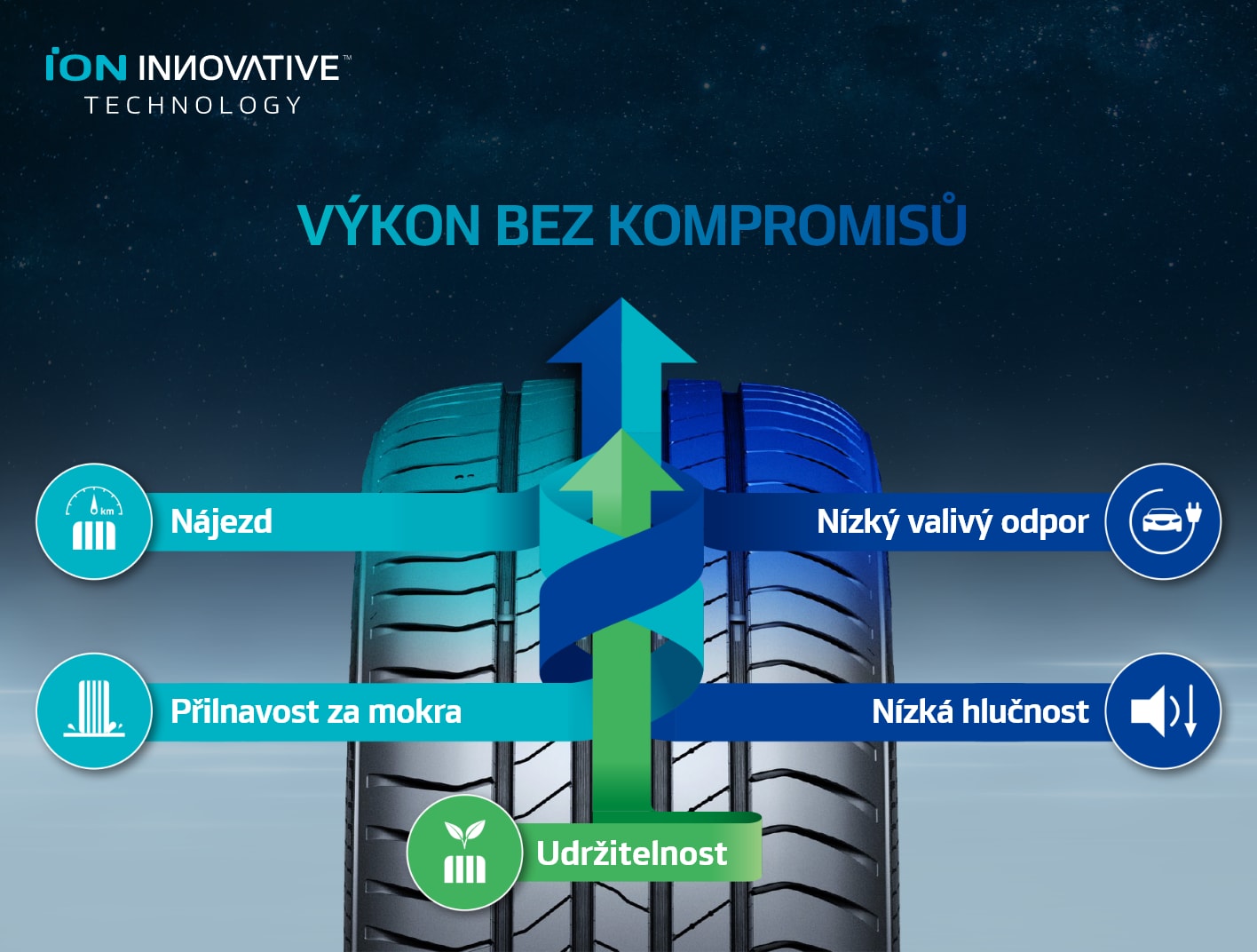 Díky technologii iON INNOVATIVE TECHNOLOGY od Hankook posouvá pneumatika iON GT hranice nejen z hlediska přilnavosti, ale i hluku a opotřebení běhounu.Maximální udržitelnost
