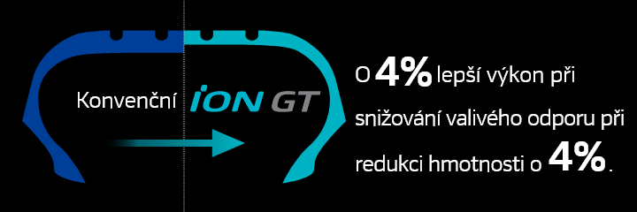zakulacení pneumatiky elektromobilů se opotřebovávají přibližně o 20 % rychleji a opotřebení je nerovnoměrnější než u vozidel se spalovacím motorem. iON GT SUV dosahuje rovnoměrného kontaktního tlaku díky optimalizaci kontaktní struktury s využitím technologie rovnoměrného zakulacení. iON GT SUV tím pádem umožňuje delší používání a nevyžaduje tak častou výměnu pneumatik.