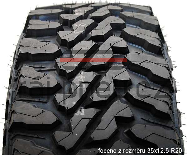 - Široký běhoun s agresivním symetrickým block dezénem